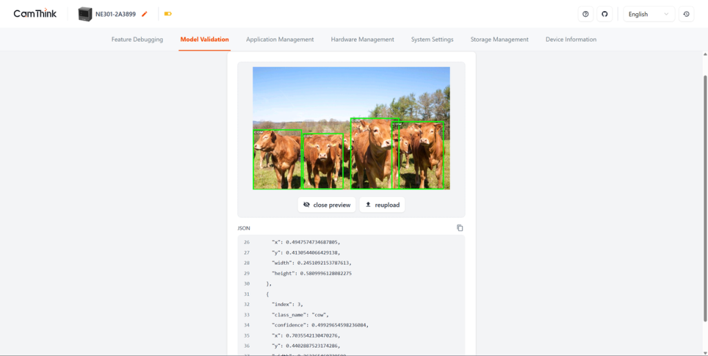 • Live preview of real-time video with AI detection overlays directly in the web interface