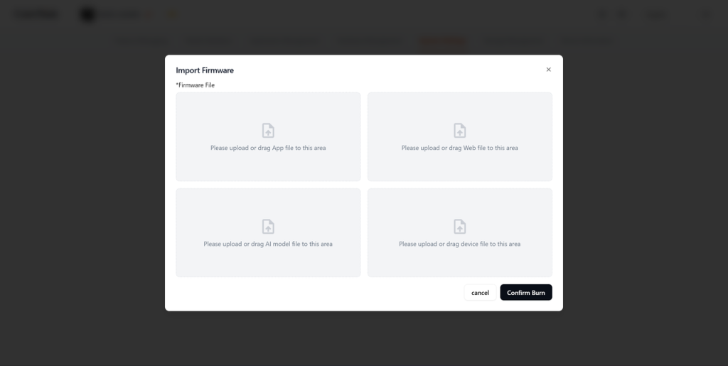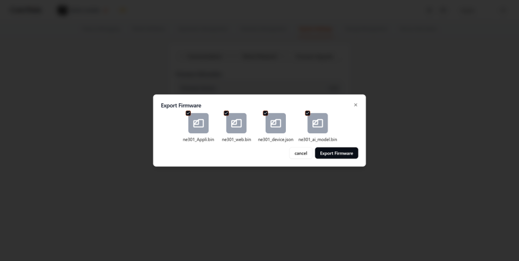 In the “Import & Export” section, the NE301 firmware provides a robust toolchain designed for industrial-grade deployment and maintenance.